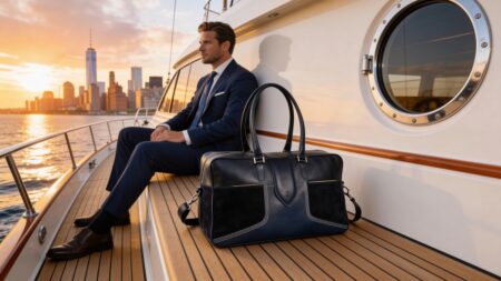 SAC de voyage 48 hrs Fabriqué en France cuir de vachette vigogne marine. Dimension : 53 x 30 x 27.